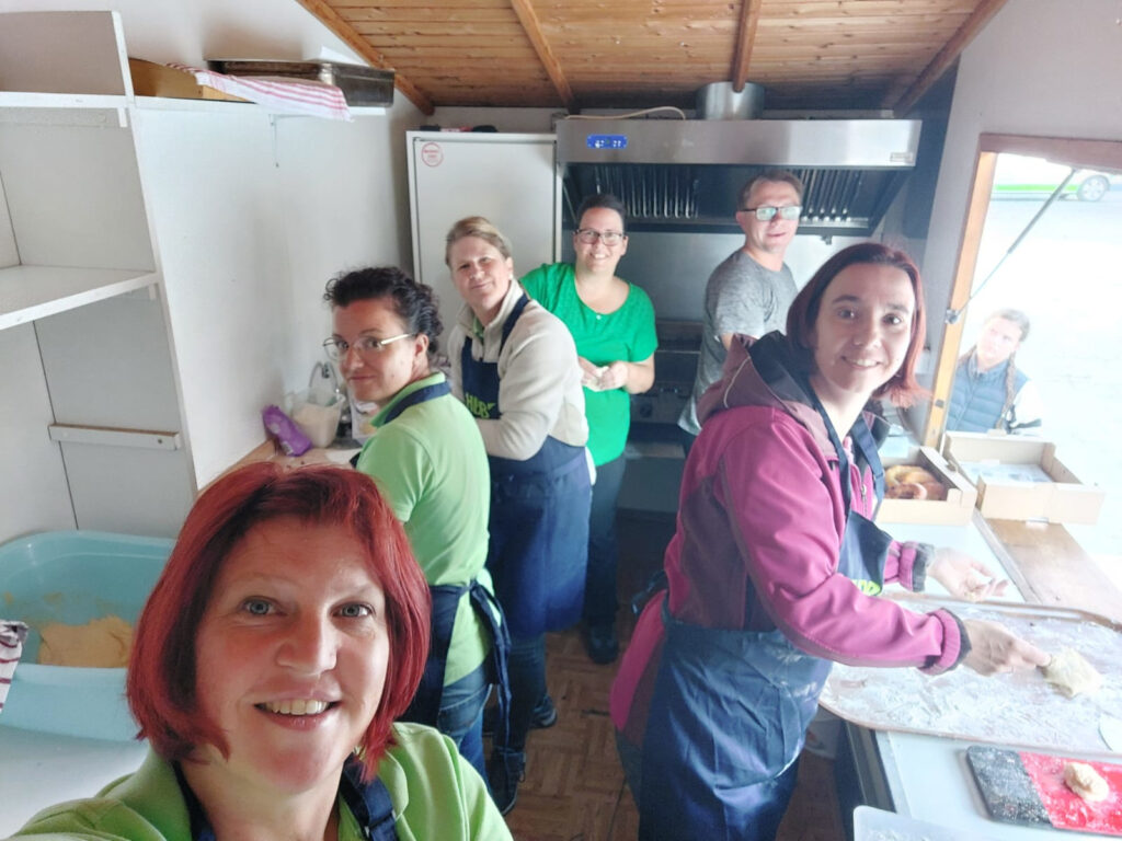 Bereits ab 7 Uhr morgens legten 12 fleißige HBB-Mitglieder los: Es wurde gekugelt, gezogen und gebacken, bis sich die Backstubenwärme in herrlich duftenden Krapfen niederschlug. Innerhalb weniger Stunden – von 07:00 bis 12:00 Uhr – entstanden mehrere hundert frisch gebackene Krapfen.
